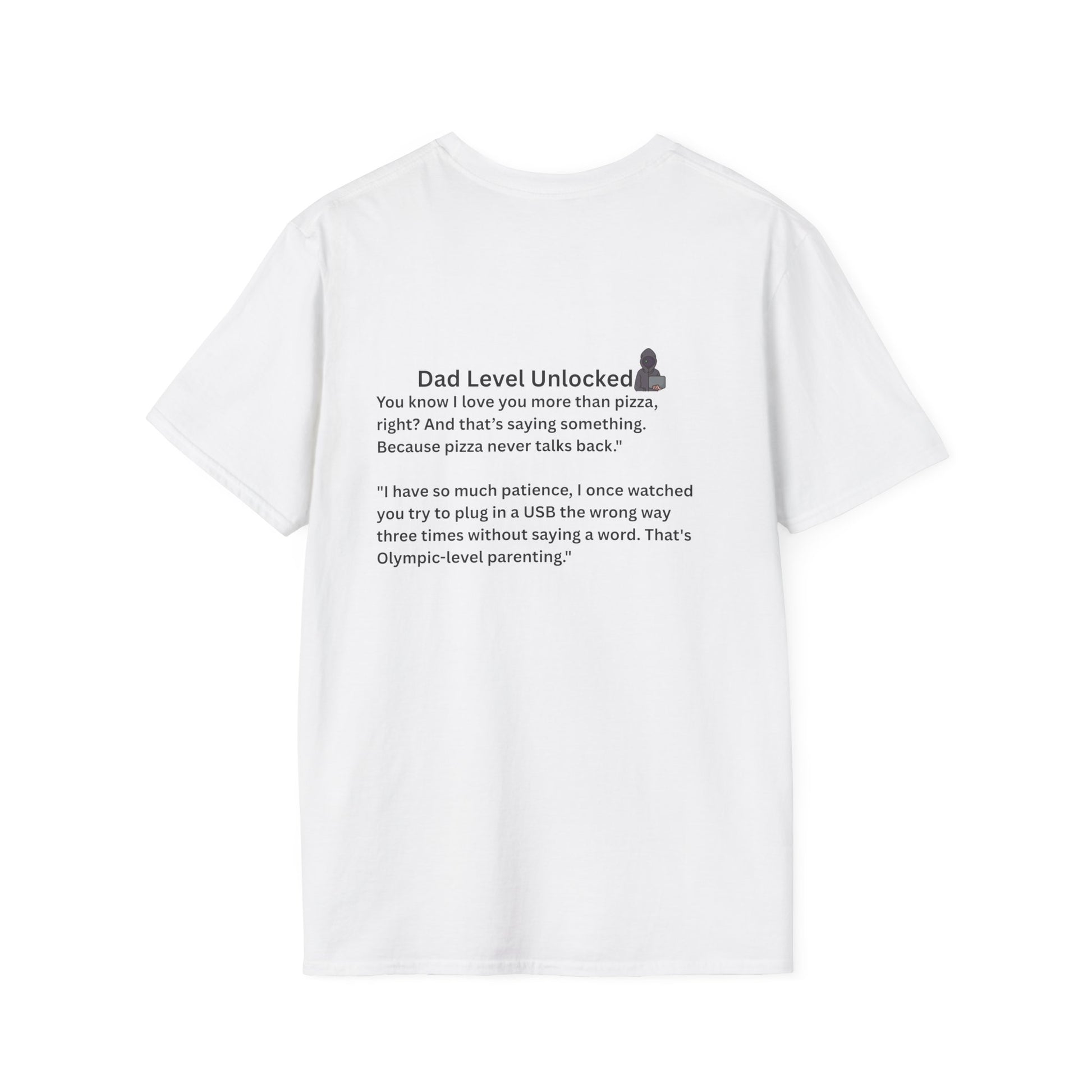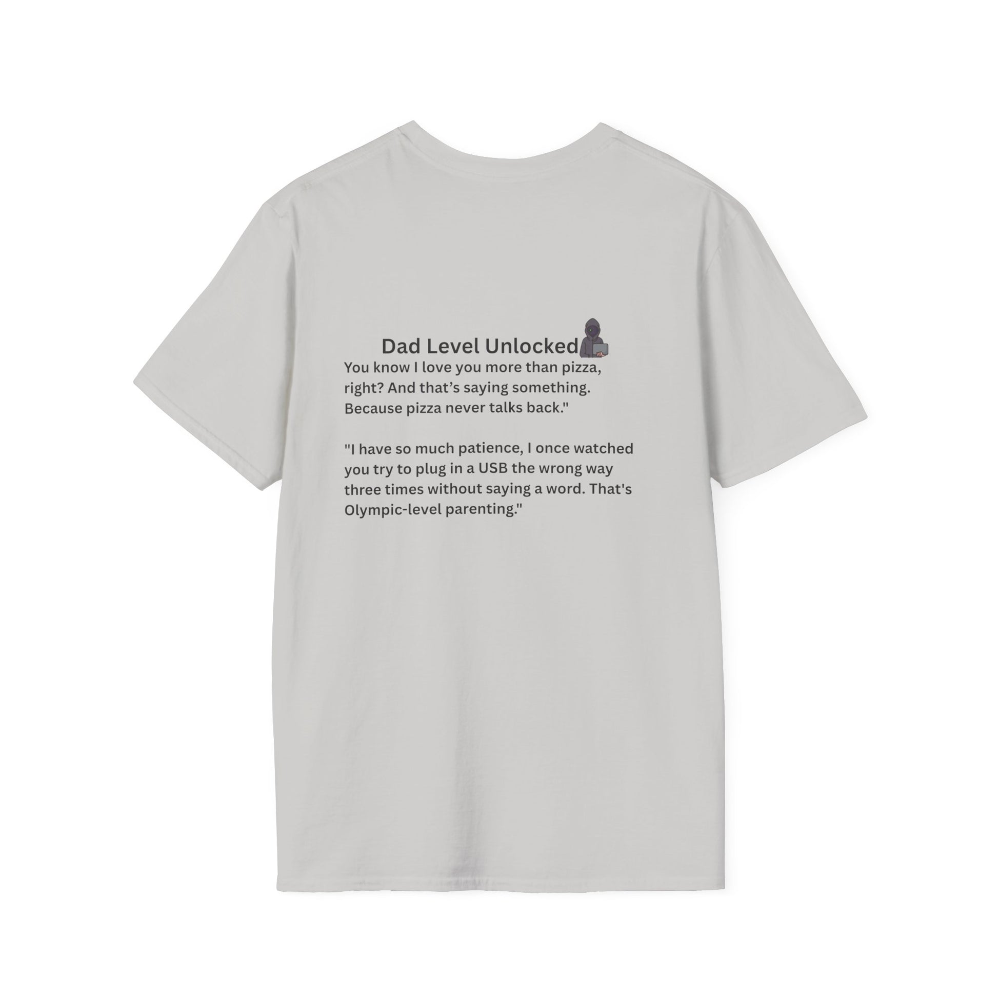 Introducing our Unisex Softstyle T-Shirt, crafted for comfort and style. This t-shirt complements any casual occasion, offering a relaxed vibe that's perfect for lounging or outings with friends. The unique designs on the front and back bring humor and warmth, making it a perfect gift for fathers and father figures. Ideal for Father's Day, birthdays, or family gatherings, this t-shirt is a conversation starter and a fun way to celebrate the important men in our lives. Embrace the joy of fatherhood or the cherished memories of father figures with this delightful addition to any wardrobe. Perfect for dads who appreciate a blend of comfort and playful design!